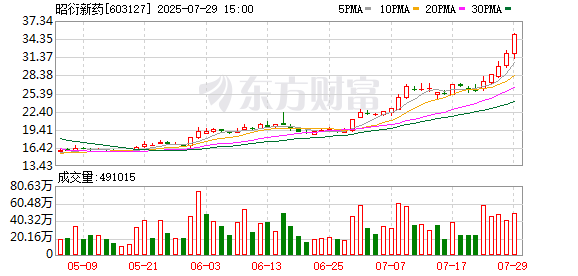 7月29日,昭衍新药(603127/06127)发布公告,公司股票在2025年7月25日、28日和29日连续3个交易日,收盘价格涨幅偏离值累计超过20%。